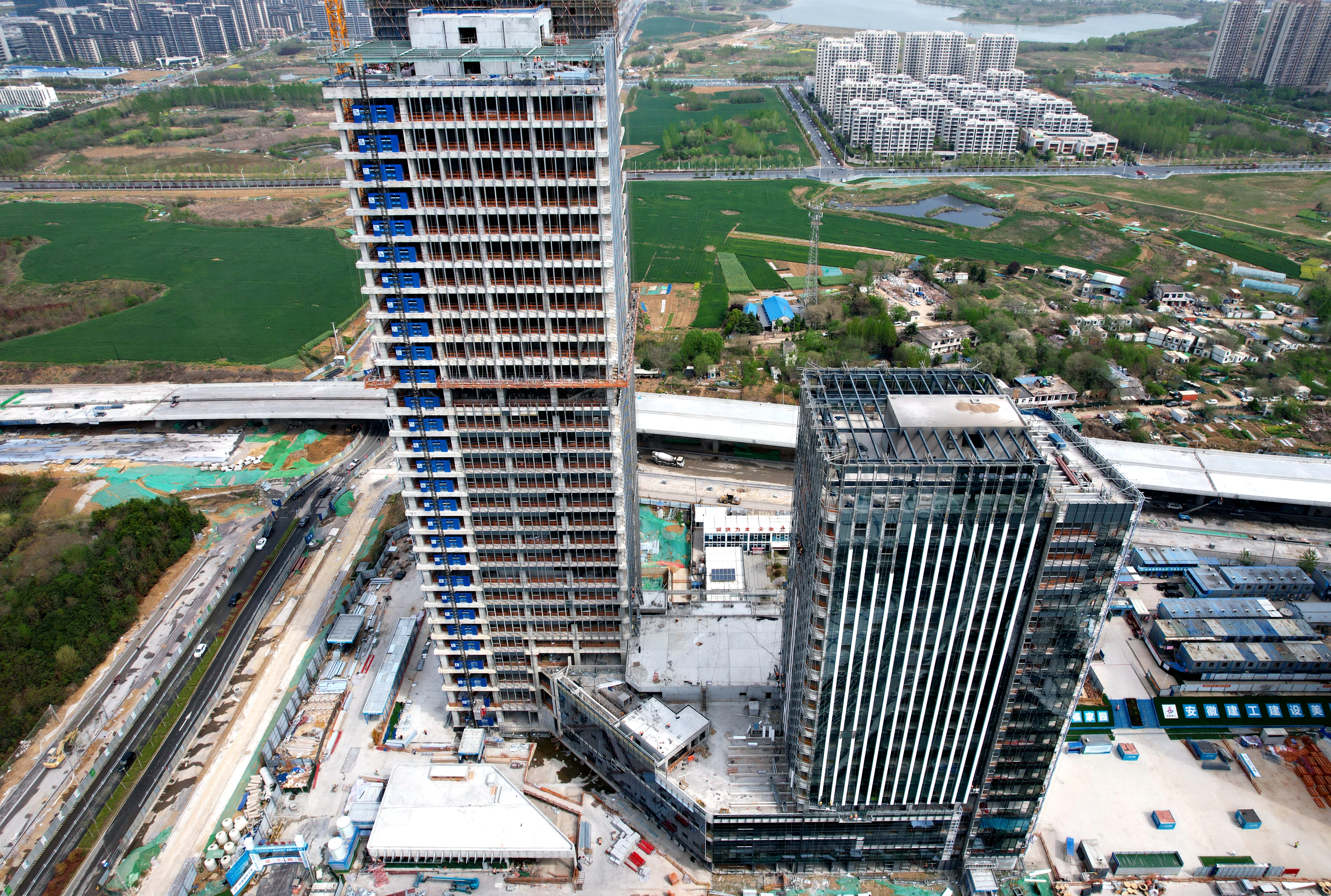 當(dāng)前,項(xiàng)目二期A2、A3樓幕墻玻璃安裝超過90%,A4樓幕墻玻璃安裝超50%。