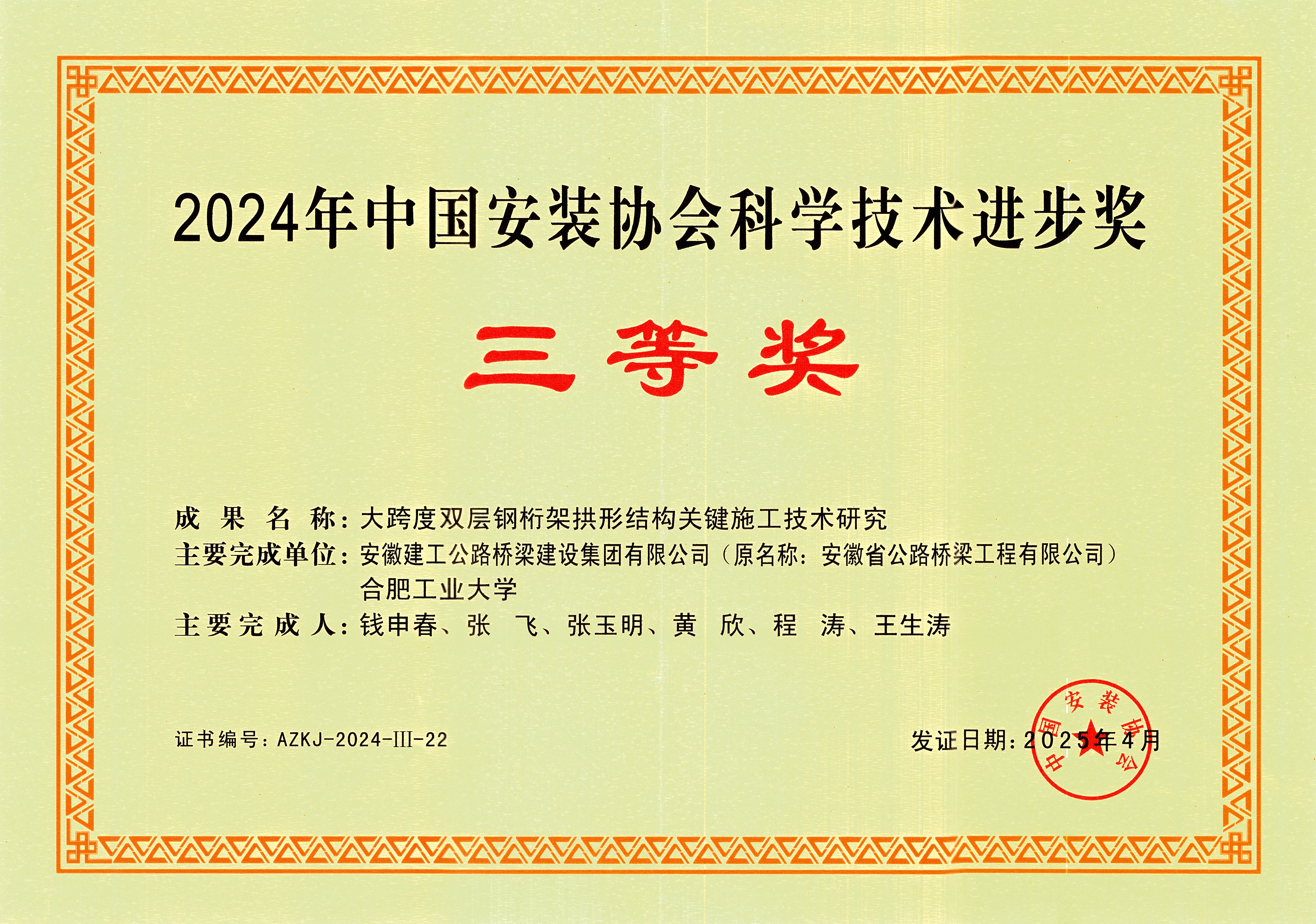 卓越創(chuàng)新 | 公司榮獲2024年中國安裝協(xié)會(huì)科學(xué)技術(shù)進(jìn)步獎(jiǎng)三等獎(jiǎng)