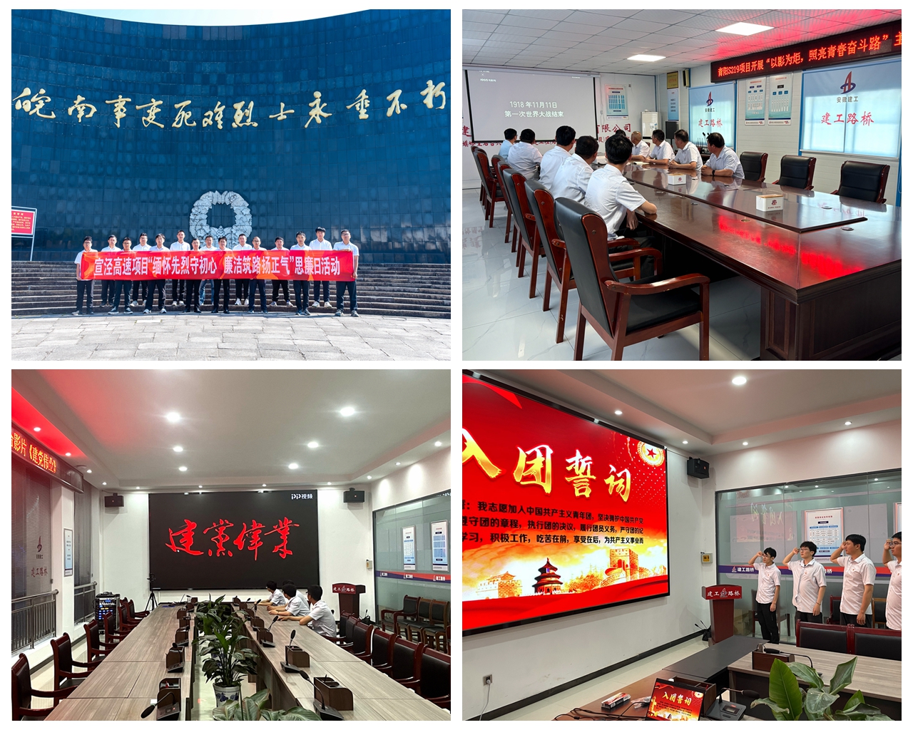 宣涇高速項(xiàng)目團(tuán)員青年赴涇縣皖南事變烈士陵園,實(shí)地感悟先輩不畏犧牲、忠誠擔(dān)當(dāng)?shù)木衿犯?。青陽S219改建項(xiàng)目、天堂寨支線高速等項(xiàng)目組織青年職工觀看《1912》《建黨偉業(yè)》等紅色影片,并重溫入團(tuán)誓詞,教育引導(dǎo)團(tuán)員青年牢記革命先輩的英勇事跡,汲取了革命先輩的信仰力量與忠誠擔(dān)當(dāng)精神。