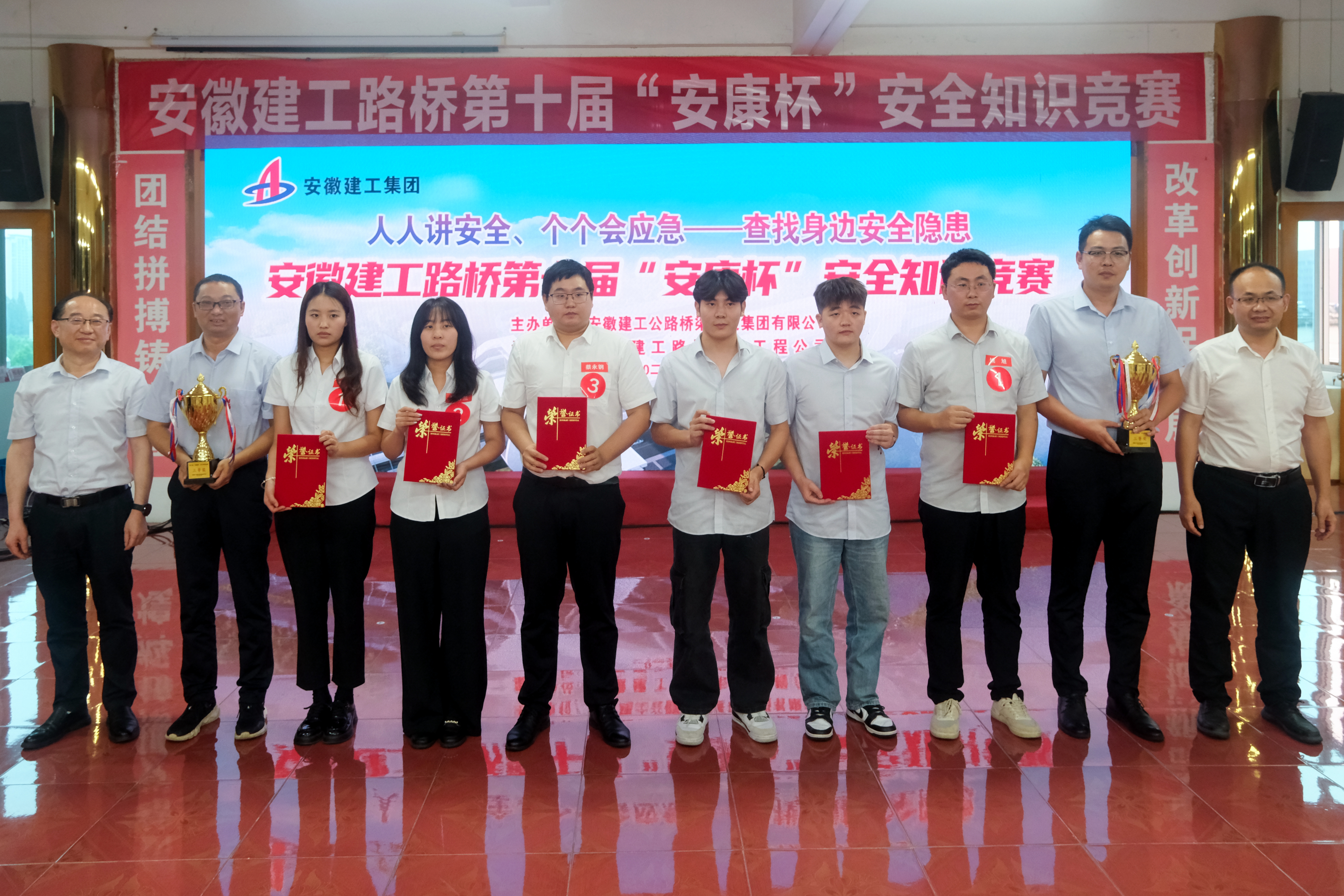 比賽過程中,來自所屬各單位的8支代表隊(duì)各顯所能、激烈拼搶。選手們以賽場為舞臺,盡顯靚麗風(fēng)采、展現(xiàn)卓越水平,憑借扎實(shí)的理論功底和出色的現(xiàn)場表現(xiàn),為觀眾們上演了一場精彩紛呈的安全知識對決。經(jīng)過多輪激烈角逐,合肥分公司代表隊(duì)榮獲一等獎,公路一公司代表隊(duì)奪得二等獎,市政公司代表隊(duì)和公路二公司代表隊(duì)獲得三等獎;市政公司獲優(yōu)秀組織獎。