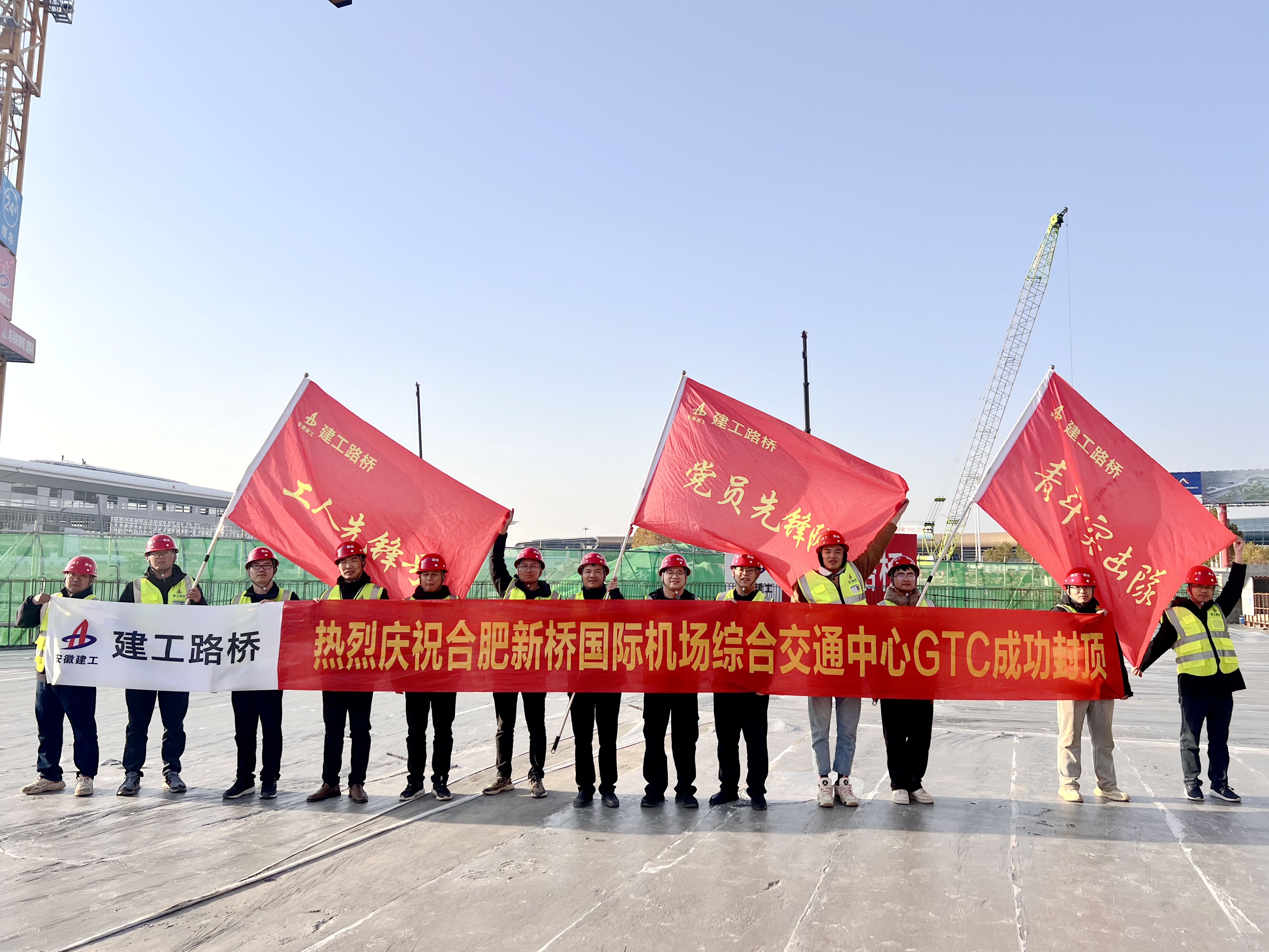 在黨旗指引下,合肥新橋國(guó)際機(jī)場(chǎng)綜合交通中心項(xiàng)目各建筑群正拔地而起,讓“翅膀上的安徽”夢(mèng)想照進(jìn)現(xiàn)實(shí)。項(xiàng)目團(tuán)隊(duì)將持續(xù)凝聚紅色動(dòng)能,為長(zhǎng)三角世界級(jí)機(jī)場(chǎng)群建設(shè)和現(xiàn)代化美好安徽貢獻(xiàn)磅礴的“建工力量”。