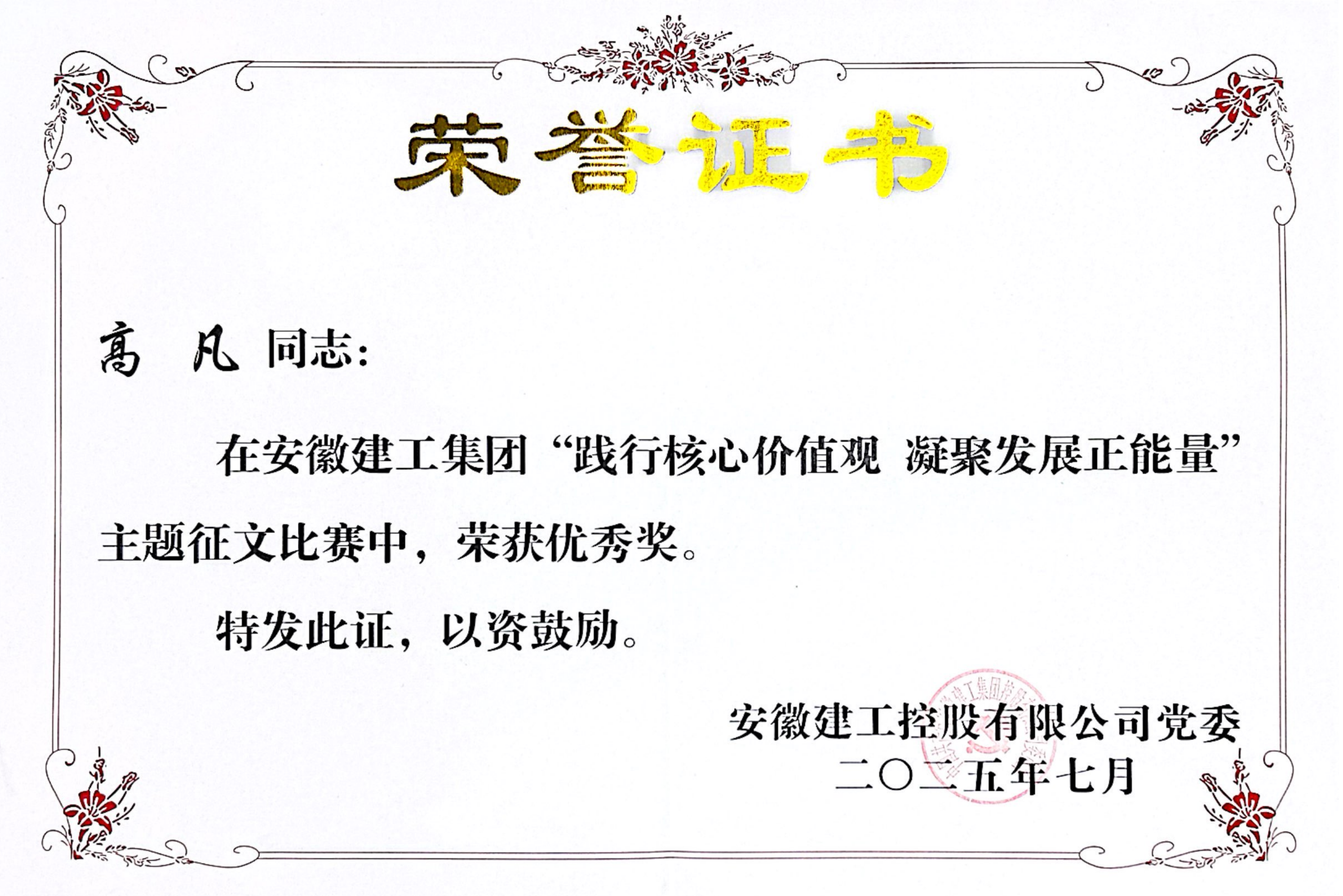 近日,集團(tuán)“踐行核心價(jià)值觀,凝聚發(fā)展正能量”主題征文比賽結(jié)果公布,公司報(bào)送的多個(gè)作品在數(shù)十篇優(yōu)秀作品中脫穎而出。其中,合肥分公司趙小龍同志作品《踐行核心價(jià)值觀,織就立體交通新篇章——安徽建工合肥新橋機(jī)場綜合交通中心建設(shè)紀(jì)實(shí)》斬獲一等獎(jiǎng),公路一公司丁自亮同志作品《戎裝換工服 丹心映初心——一名退役軍人的核心價(jià)值觀踐行之路》、橋梁公司高凡同志作品《經(jīng)緯縱橫處 燈火照長路——建工價(jià)值觀的泥土與鋼》榮獲優(yōu)秀獎(jiǎng)。